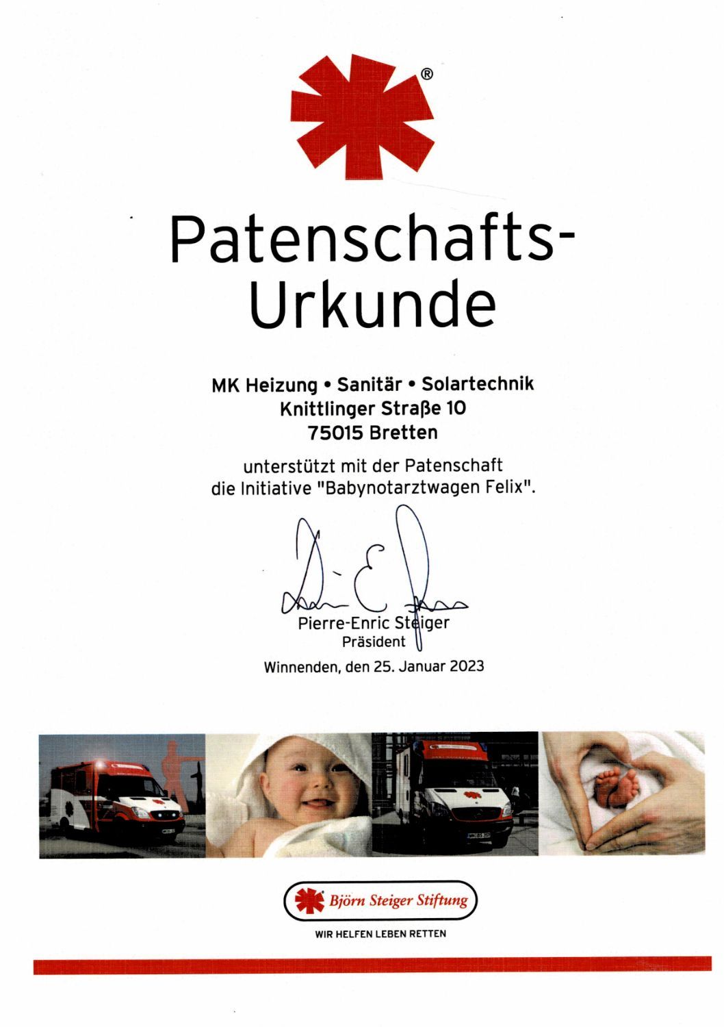 Eine wunderbaren Möglichkeit etwas Gutes zu tun und die wichtige Arbeit des Babynotarztwagens langfristig zu unterstützen. Eine Patenschaft ist eine tolle Art, sich für diesen wichtigen Zweck einzusetzen. Wir unterstützen den Babynotarztwagen schon mehrere Jahre.