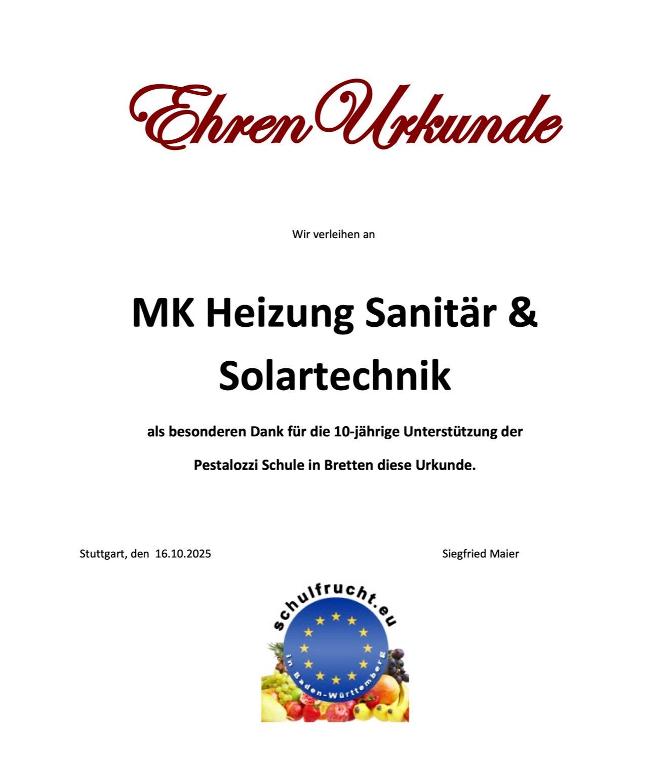 Schon seit 2012 unterstützen wir das Schulfrucht-Programm an der Petalozischule in Bretten.