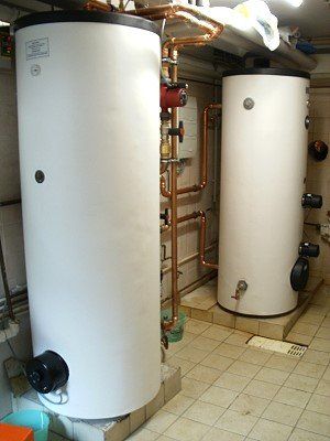 der Fa. Dimplex zur Außenaufstellung, inkl. Wärmepumpenstation, Pumpenstation zur Systemtrennung der Solaranlage (Glycolgemisch) und des Heizungswassers, Montage eines Brauchwasserspeichers mit 500 Liter und eines Pufferspeichers mit 300 Liter Fassungsvermögen.