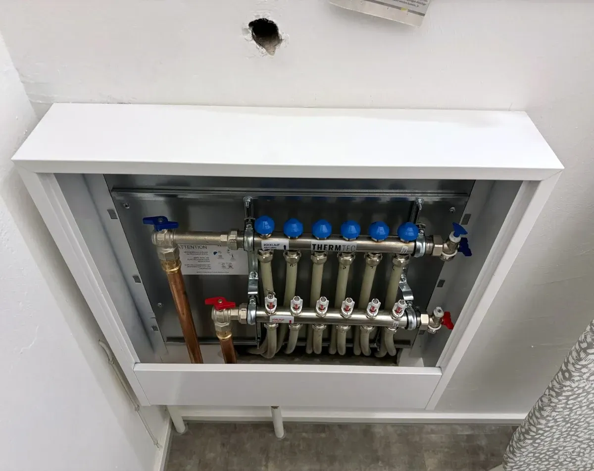 Allein im oberen Stockwerk wurden 22 Heizungskreise und im Erdgeschoß 18 Fußbodenheizungskreise verlegt.